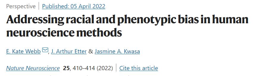 More recently, I worked on a perspective discussing racial and phenotypic bias in human neuroscience methods with friends/collaborator Arthur Etter and Dr. Jasmine Kwasa.