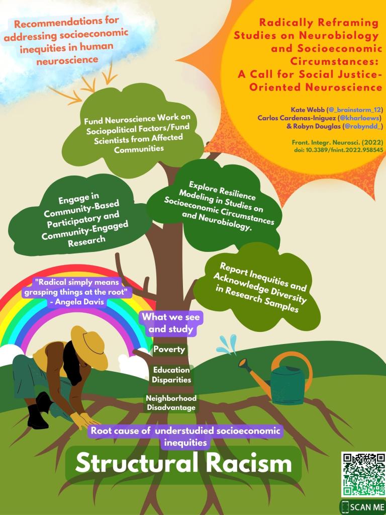 We proposed that studies on the neurobiology of socioeconomic factors would be more effective and accurate if structural racism was identified as the driver of inequities. Ethnoracially minoritized individuals disproportionately reside in disadvantaged neighborhoods and have fewer economic opportunities (as indexed by wages, benefits, wealth, etc.).